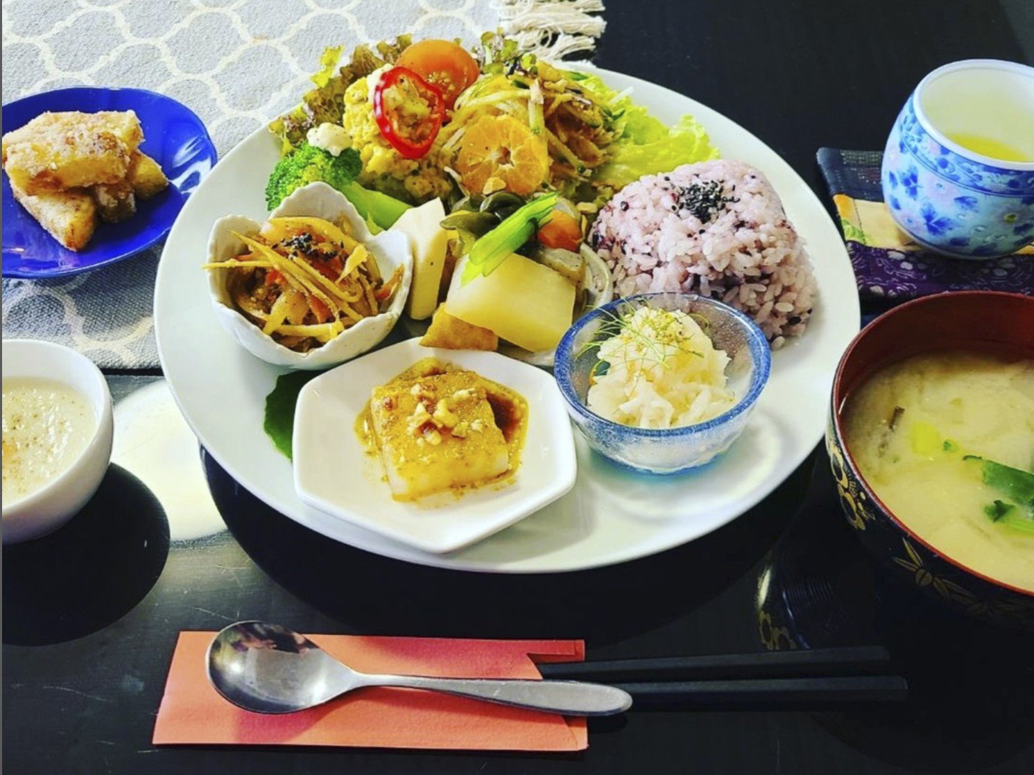 そこで採れる新鮮な野菜や果物を使い、丁寧に手作りされたメニューが味わえる。