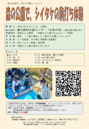 「森の公園で、シイタケの駒打ち体験」チラシ(R8.2.21)