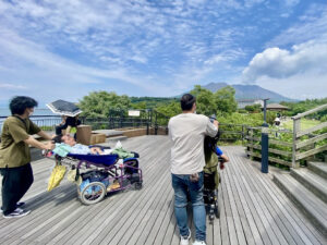 桜島ジオサルクでは、高齢者、ベビーカー、障がいをお持ちの方もゆっくり楽しめるガイドツアーを開催しています。